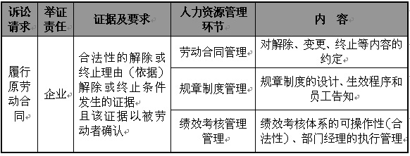 三、合同解除或終止 法律責(zé)任:恢復(fù)原勞動關(guān)系或違法解除的雙倍賠償金 員工對于勞動合同解除或終止的爭議大多集中在解除或終止的理由不成立或理由違法,企業(yè)需要證明的是已經(jīng)合法生效的理由或依據(jù),且該理由和依據(jù)使員工已經(jīng)獲知并承諾遵守的。這部分爭議,也是對企業(yè)人力資源管理在勞動合同合同文本的內(nèi)容設(shè)計(jì)、規(guī)章制度管理和績效考核管理體系等方面的嚴(yán)謹(jǐn)性、科學(xué)性和監(jiān)督執(zhí)行的有效性等方面的考驗(yàn)。